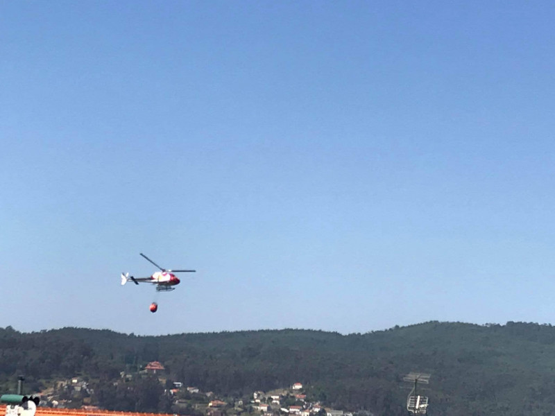 No local encontram-se os Bombeiros Voluntários Famalicenses e de Famalicão com apoio de um helícoptero.