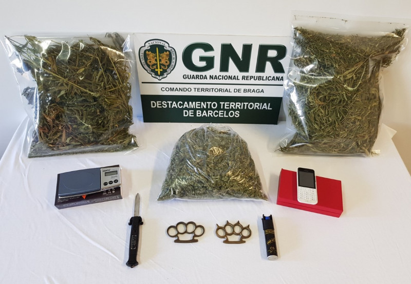 O suspeito foi detido em flagrante delito, de acordo com o Comando Distrital da GNR, numa operação que resulta de uma "investigação por cultivo de plantas de canábis, que decorre há cerca de um mês". Na sequência de busca domicliária e num veículo, foram apreendidas 264 doses de canábis folhas; uma balança de precisão; uma faca de corte de estupefaciente; um telemóvel; duas soqueiras; e um aerossol.