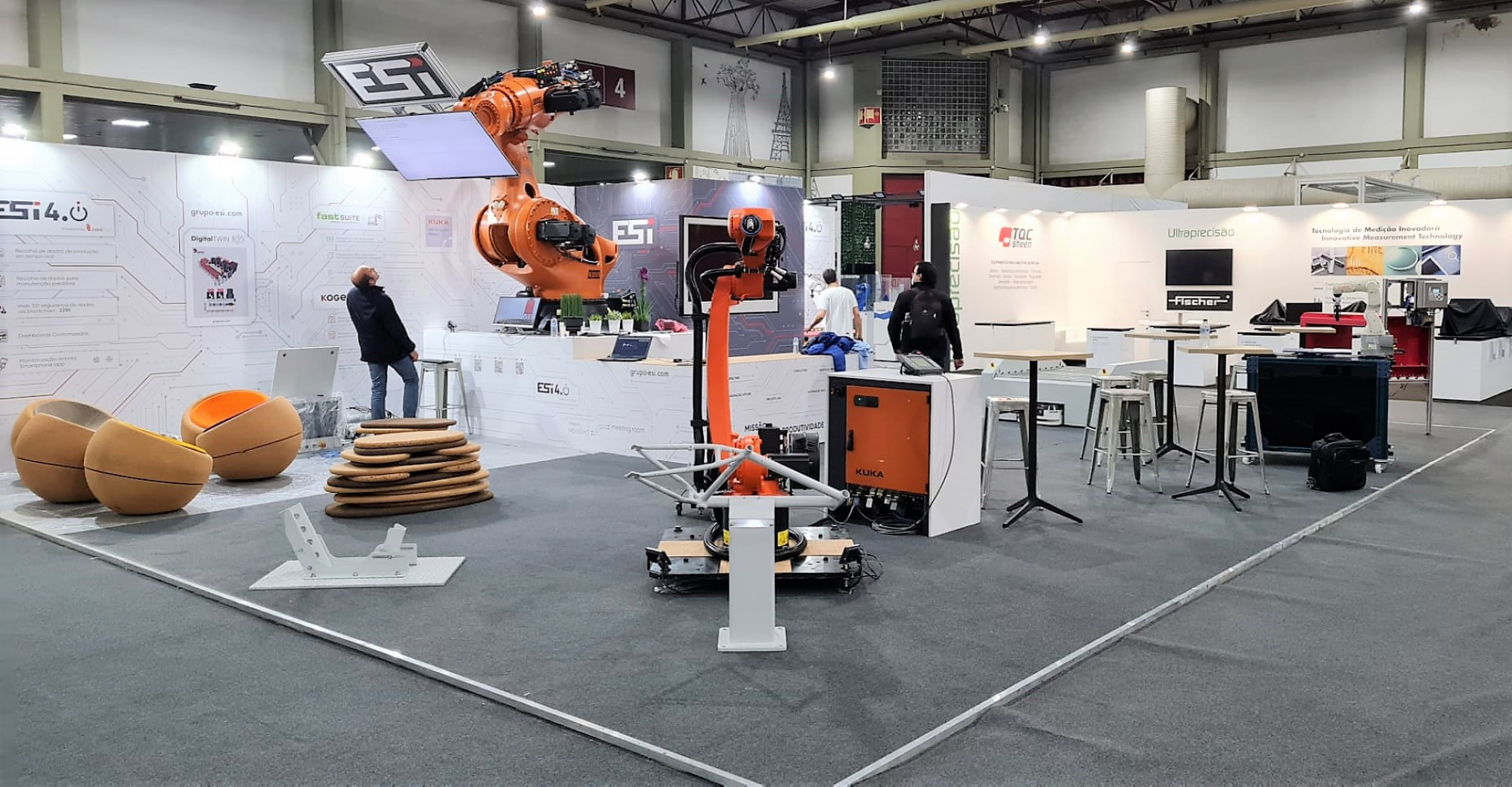 Ao alcance dos visitantes está um AGV com um transportador de rolos incorporado que consegue deslocar a carga de um lado para o outro de forma automática. Uma vez no destino, a entrega da carga é também automática, assegurando todo o processo logístico sem qualquer intervenção humana. No certame, reservado a profissionais, que entre esta quarta-feira e sábado esgota a capacidade da Exponor, a ESI apresenta ao mercado português pela primeira vez a oferta da empresa norte-americana Vention, que, segundo Gil Sousa, vem “facilitar bastante” a fase de projeto e de procura de soluções estruturais, assim como de automação online. Despercebido no espaço da empresa na maior feira industrial portuguesa não passa também o “Titan”, o maior robô dos alemães da Kuka, capaz de manipular mais de uma tonelada.