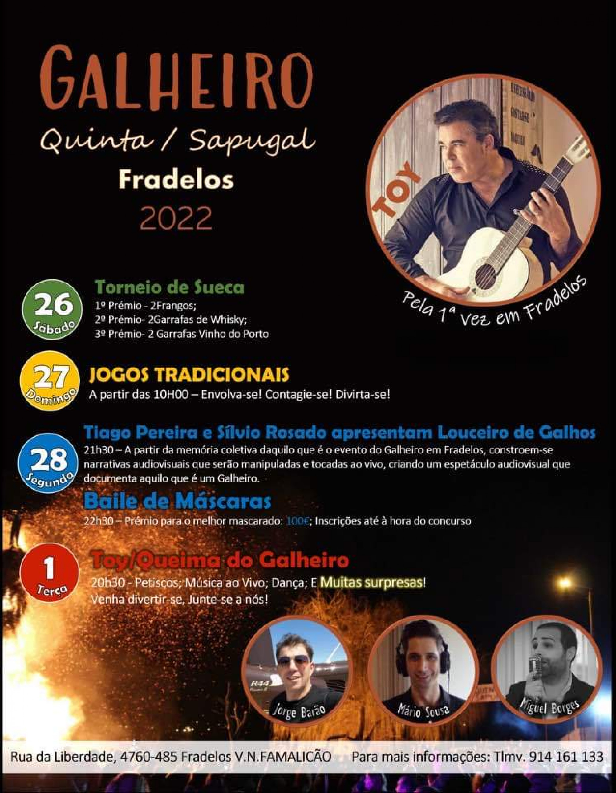A Associação Juvenil de Fradelos - KOKLUS regressar aos grandes planos para o Carnaval para cumprir a tradicional Queima do Galheiro, e com dois nomes grandes da música popular: Quim Barreiros e Toy.