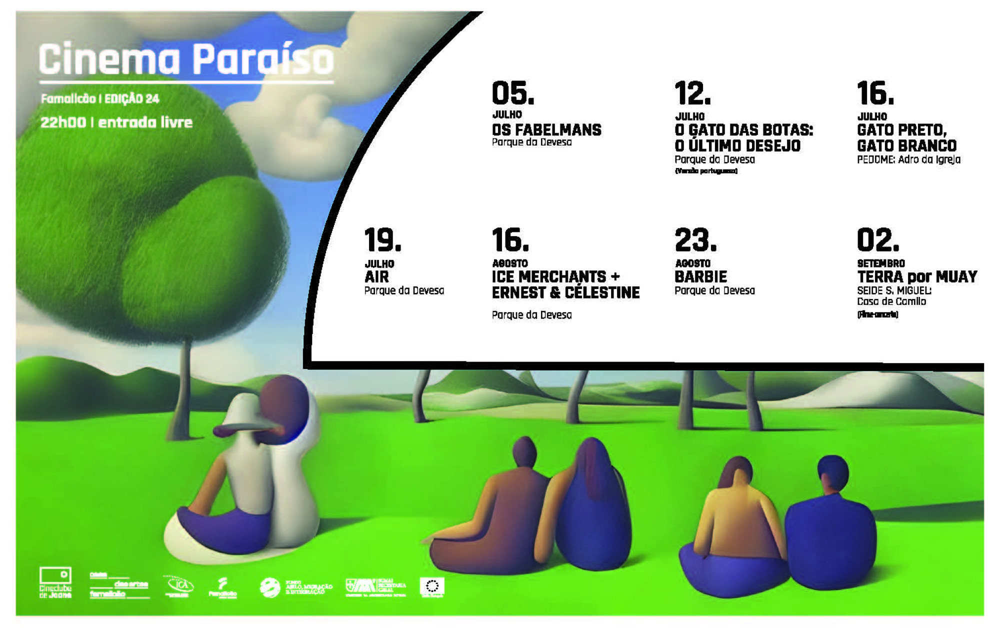 Já agosto traz a curta-metragem do português João Gonzalez, recentemente nomeada aos Óscares, “Ice Merchants” (2022), e a longa-metragem “Ernest & Célestine: A viagem em Charabie” (2023) de Jean-Christopher Roger e Julien Cheng, que serão exibidas em conjunto na quarta-feira, 16 de agosto, no parque da cidade.