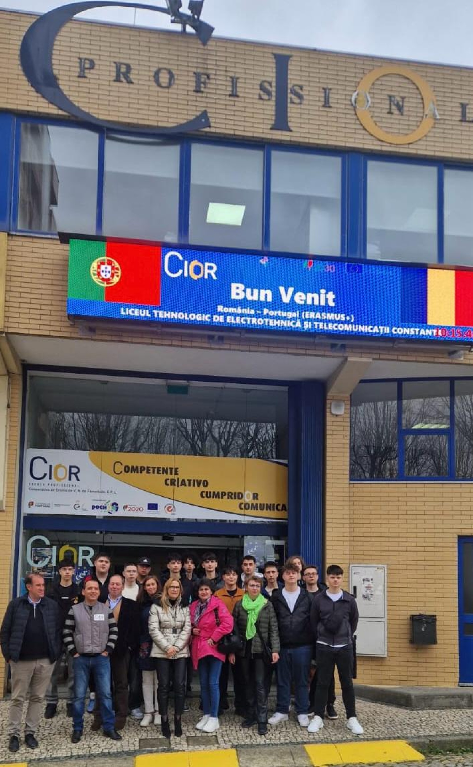 Um grupo de 14 alunos romenos, acompanhado de duas professoras, a frequentar o curso de eletrónica no Liceu Tecnológico de Eletrónica e Telecomunicações de Constança, encontra-se a realizar um estágio na Escola Profissional CIOR .