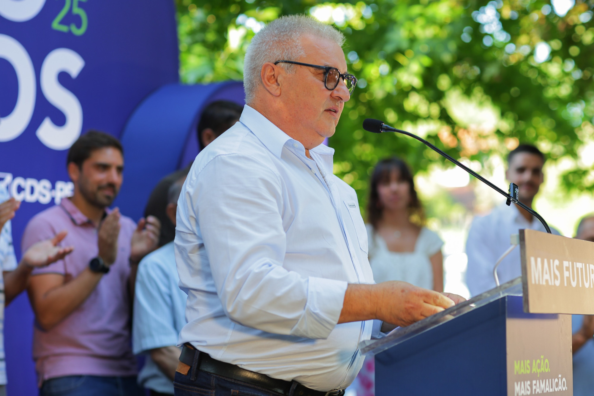 O edil e candidato falava depois das emocionadas palavras do mandatário do recandidato Francisco Oliveira, o ex-presidente da Junta de Freguesia, João Pereira, que não conteve as lágrimas ao recordar os avanços realizados na freguesia na área educativa.