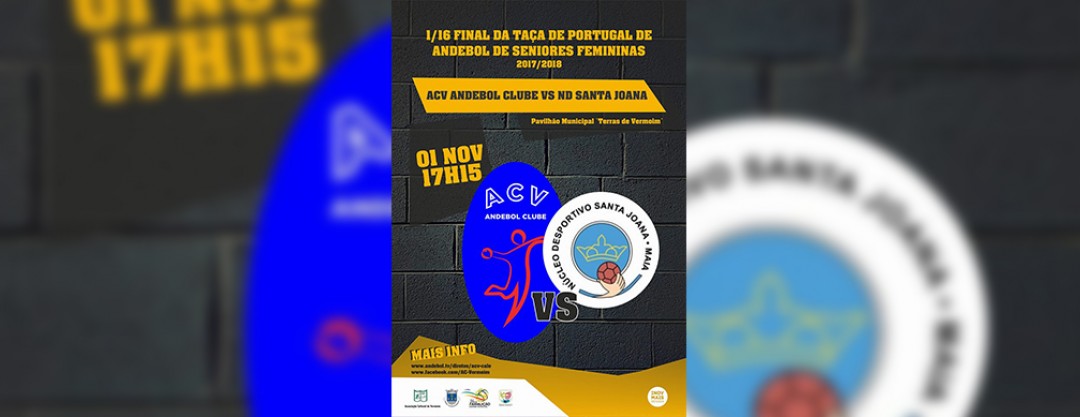 A Equipa Sénior Feminina do ACV Andebol Clube disputa amanhã, dia 1 de Novembro, pelas 17h15 no Pavilhão Municipal "Terras de Vermoim", os 1/16 de Final Taça de Portugal frente à formação congénere do ND Santa Joana.