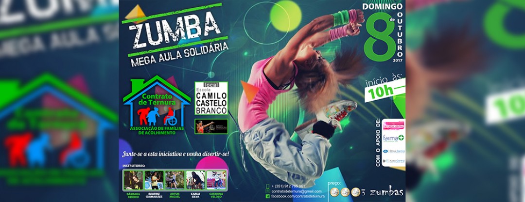 É já no próximo domingo, dia 8 de outubro, que a Escola Camilo Castelo Branco recebe a Mega Aula de Zumba Solidária organizada pela Associação Contrato de Ternura.