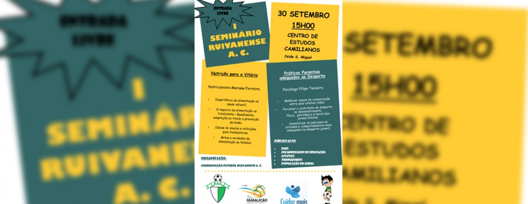 O Ruivanense Atlético Clube e a Escola de Futebol “ O Capitão” irão realizar no próximo sábado, dia 30 de setembro de 2017, pelas 15 horas no Auditório do Centro de Estudos Camilianos, na freguesia de S. Miguel de Seide, o I Seminário - "Nutrição para a Vitória e Práticas Parentais adequadas ao Desporto ”.