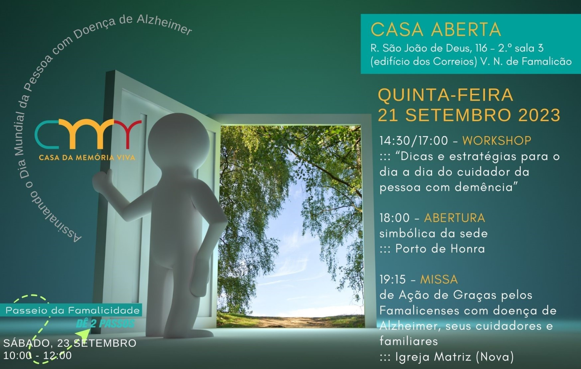 A associação famalicense Casa da Memória Viva abre nesta quinta-feira, 21, “Dia Mundial da Pessoa com Doença de Alzheimer”, um espaço para atividades culturais e de suporte a cuidadores e familiares de pessoas com demência, no centro da cidade de Famalicão.