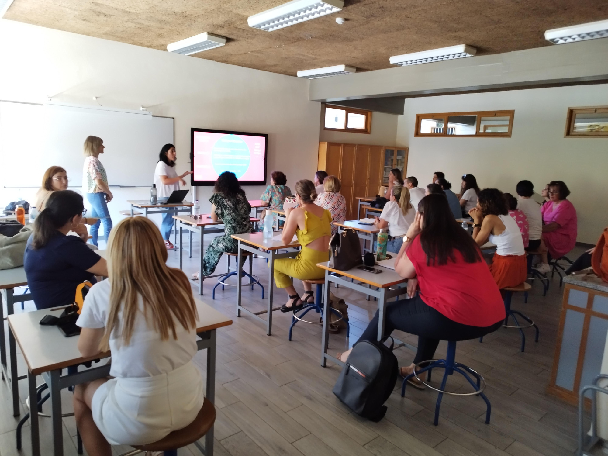 Foi um momento de verdadeira partilha entre pares. Aqueles que tinham viajado e conhecido novas estratégias pedagógicas nas mais diferentes áreas apresentaram-nas e envolveram os colegas em atividades muito enriquecedoras. Em pouco tempo...