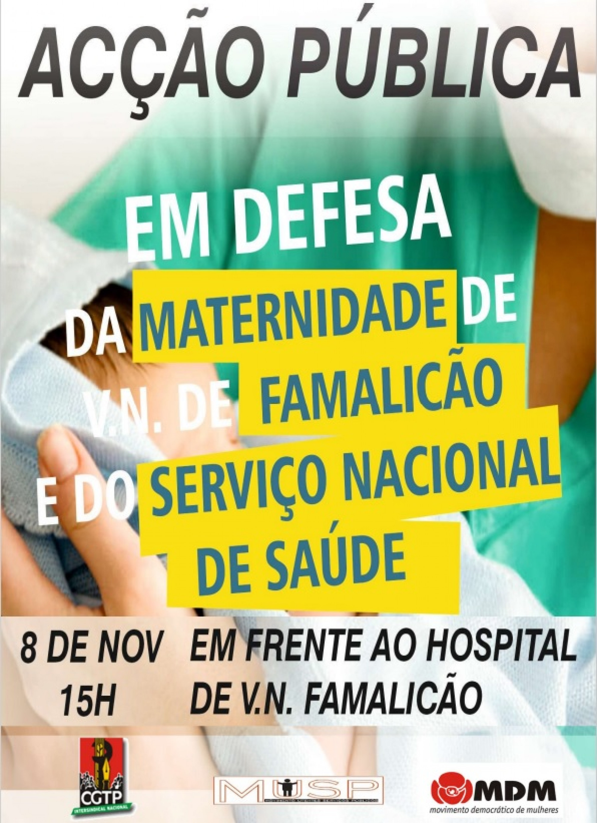 A União dos Sindicatos do Distrito de Braga/CGTP-IN, em conjunto com sindicatos da àrea da saúde, com o Movimento de Utentes dos Serviços Públicos e com o Movimento Democrático de Mulheres, irá levar a efeito uma Acção Pública em defesa da Maternidade de Vila Nova de Famalicão e do Serviço Nacional de Saúde.
