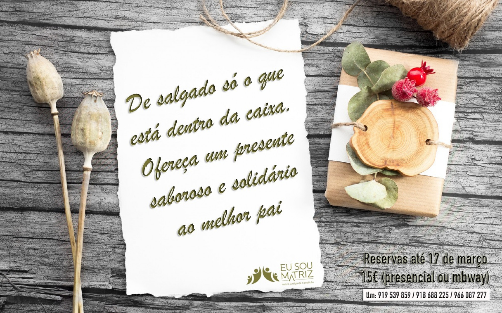 Com o intuito de assinalar o Dia do Pai, no próximo dia 19 de março, a paróquia de Santo Adrião, através do movimento Eu Sou Matriz, irá dinamizar uma acção que tem como obbjectivo a angariação de fundos para as obras da matriz.