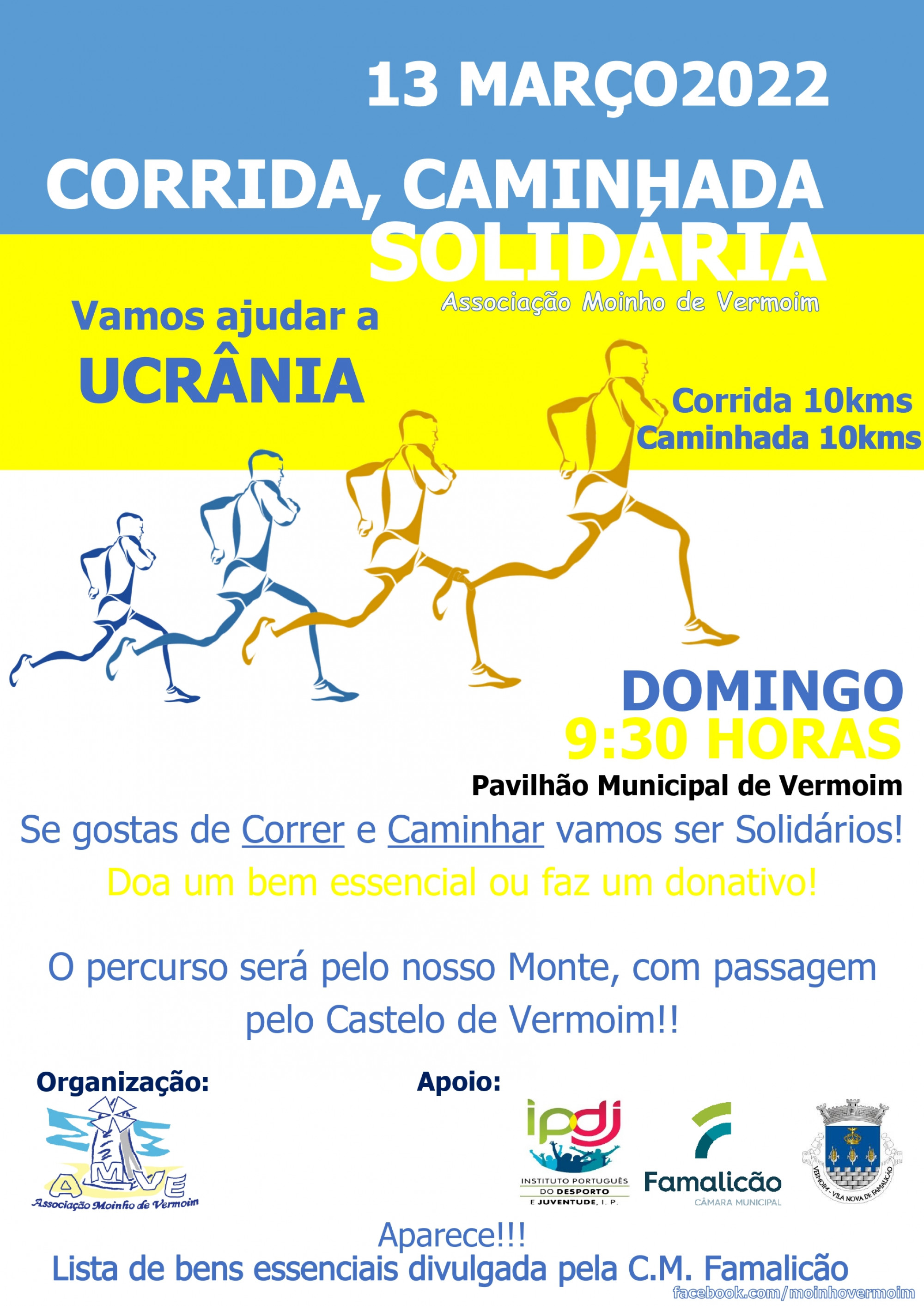 A Associação Moinho de Vermoim (AMVE) vai organizar, no próximo domingo, dia 13, e com o apoio da Junte de Freguesia de Vermoim e da Câmara Municipal de Famalicão, uma atividade solidária para angariar bens para ajudar a Ucrânia. O evento consiste numa corrida/caminhada solidária, com partida às 09h30 junto ao pavilhão municipal Terras de Vermoim. O percurso é de cerca de 10 quilómetros, com passagem pelo Castelo de Vermoim. A AMVE, no âmbito do evento, apela aos...