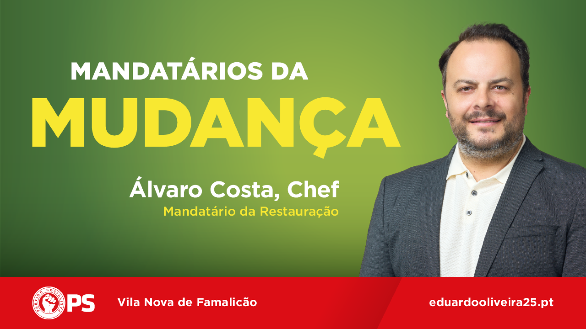 Eduardo Oliveira, candidato do Partido Socialista (PS) à Câmara Municipal de Vila Nova de Famalicão, apresenta esta noite as linhas gerais do seu programa autárquico, bem como os mandatários setoriais da candidatura. Este momento assume particular importância, uma vez que permitirá partilhar com os f...