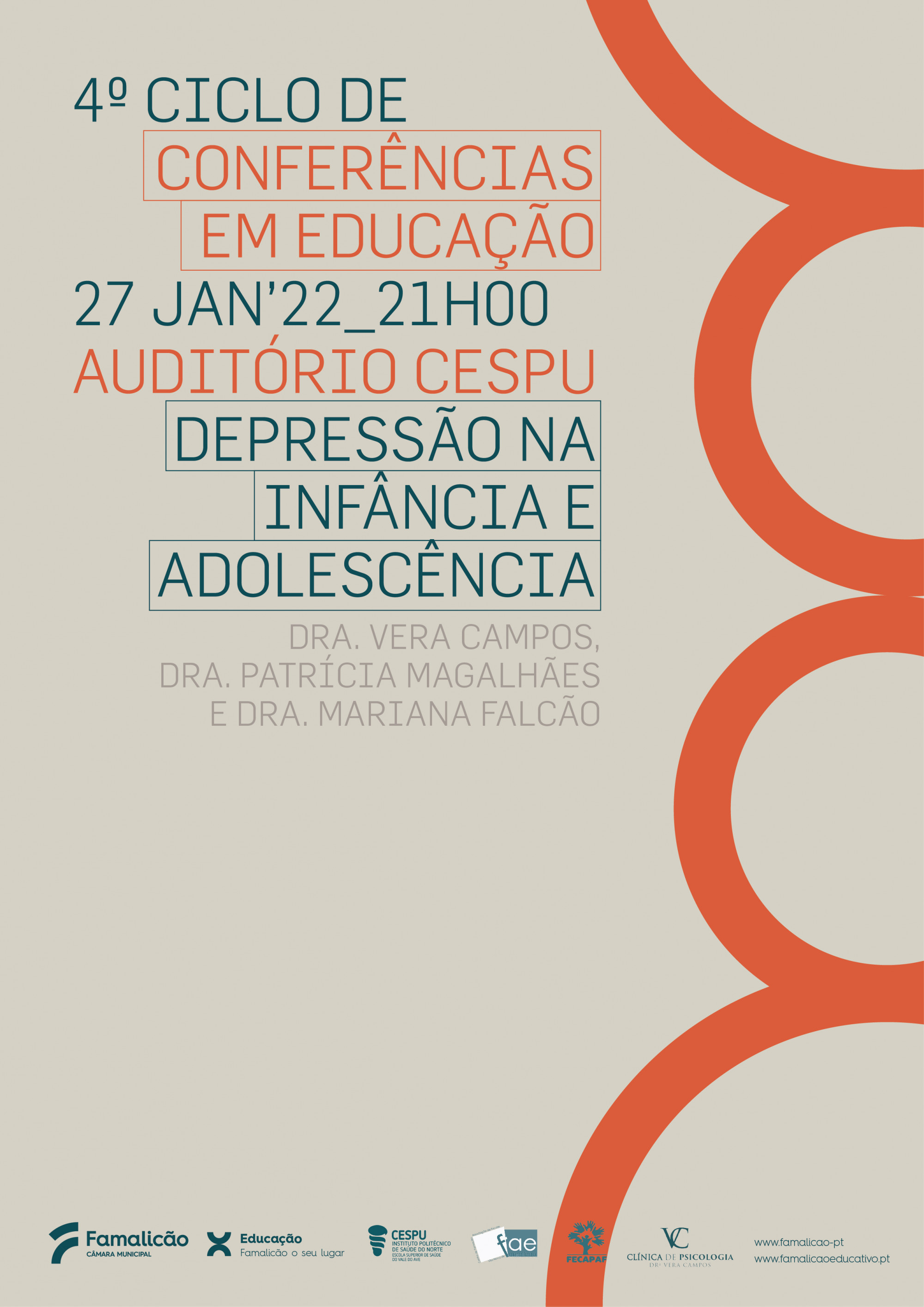 O 4.º Ciclo de Conferências em Educação promovido em parceria entre o Município, a Federação Concelhia das Associações de Pais de Famalicão, a Cooperativa de Ensino Superior Politécnico e Universitário, CRL (CESPU) e o Centro Formação de Associação de Escolas de Vila Nova de Famalicão, arranca esta quinta-feira em formato online.