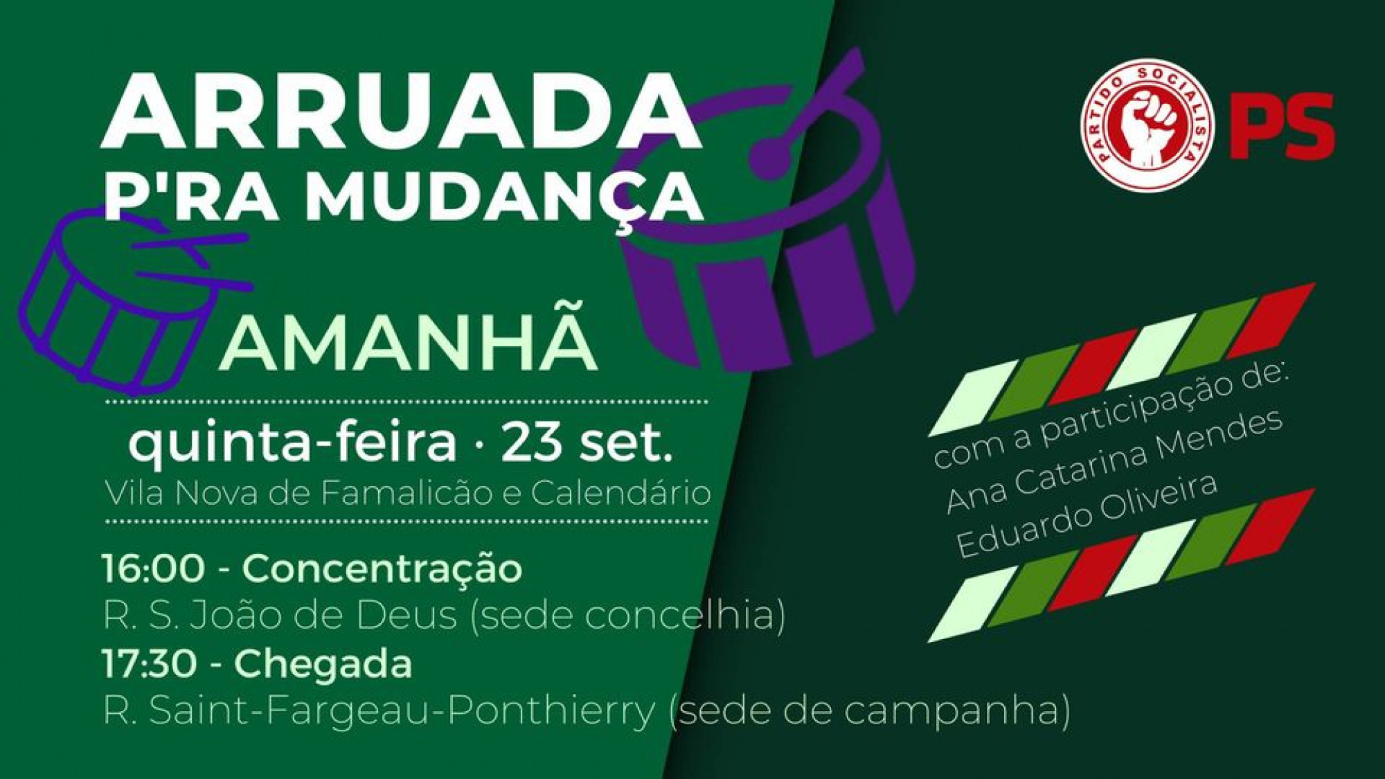 Amanhã, quinta-feira, Ana Catarina Mendes, líder parlamentar do PS estará em Famalicão para mais um apoio às candidaturas socialistas em Famalicão e, em especial, a Eduardo Oliveira.