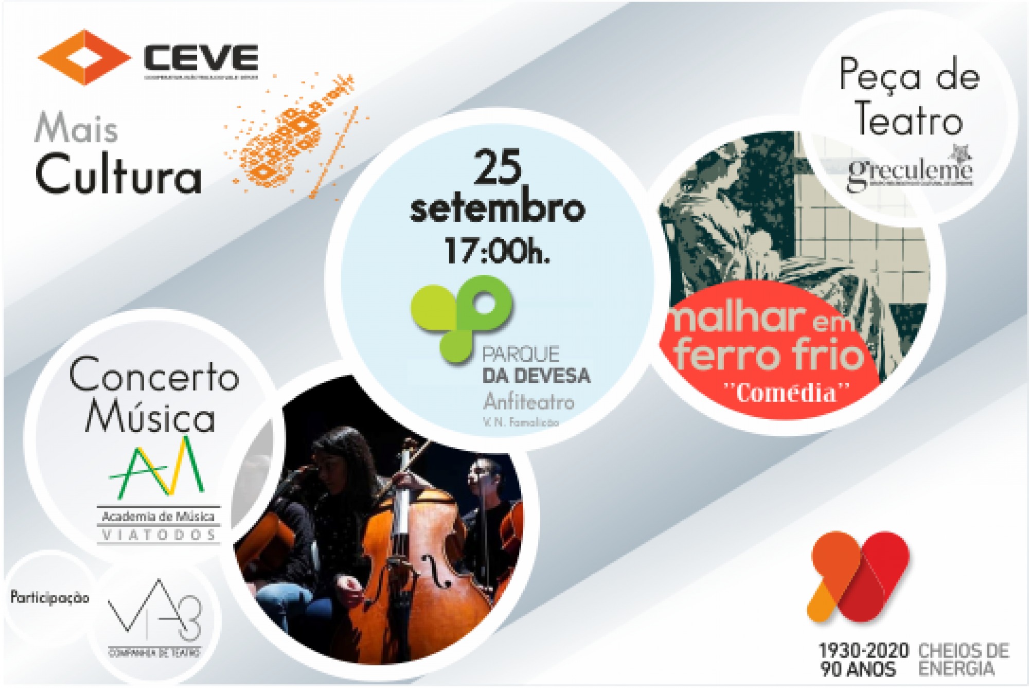 No âmbito da celebração dos seus 90 Anos, a Cooperativa Eléctrica do Vale d’Este apresenta, neste mês de setembro, mais um CEVE C.A.M.P (Comunidade Artes Música e Performance), uma iniciativa cultural e artística que tem vindo a ser promovida como forma de oferecer à comunidade uma série de momentos de convívio, confraternização e bem-estar através de espetáculos culturais e artísticos em espaço público.