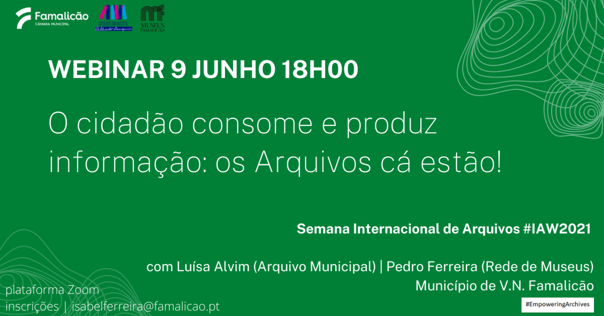 O municipio de Vila Nova de Famalicão vai assinalar entre 7 e 11 de junho de 2021, a Semana Internacional de Arquivos #IAW2021. No dia 9, quarta-feira, pelas 18h00, irá decorrer um Webinnar dedicado ao tema “O cidadão consome e produz informação: os Arquivos cá estão!”, que destaca o princípio fundamental de que o cidadão tem o direito de acesso aos arquivos de órgãos públicos e os arquivos têm que gerir e preservar a informação. Com Luísa Alvim (Arquivo Municipal) e ...