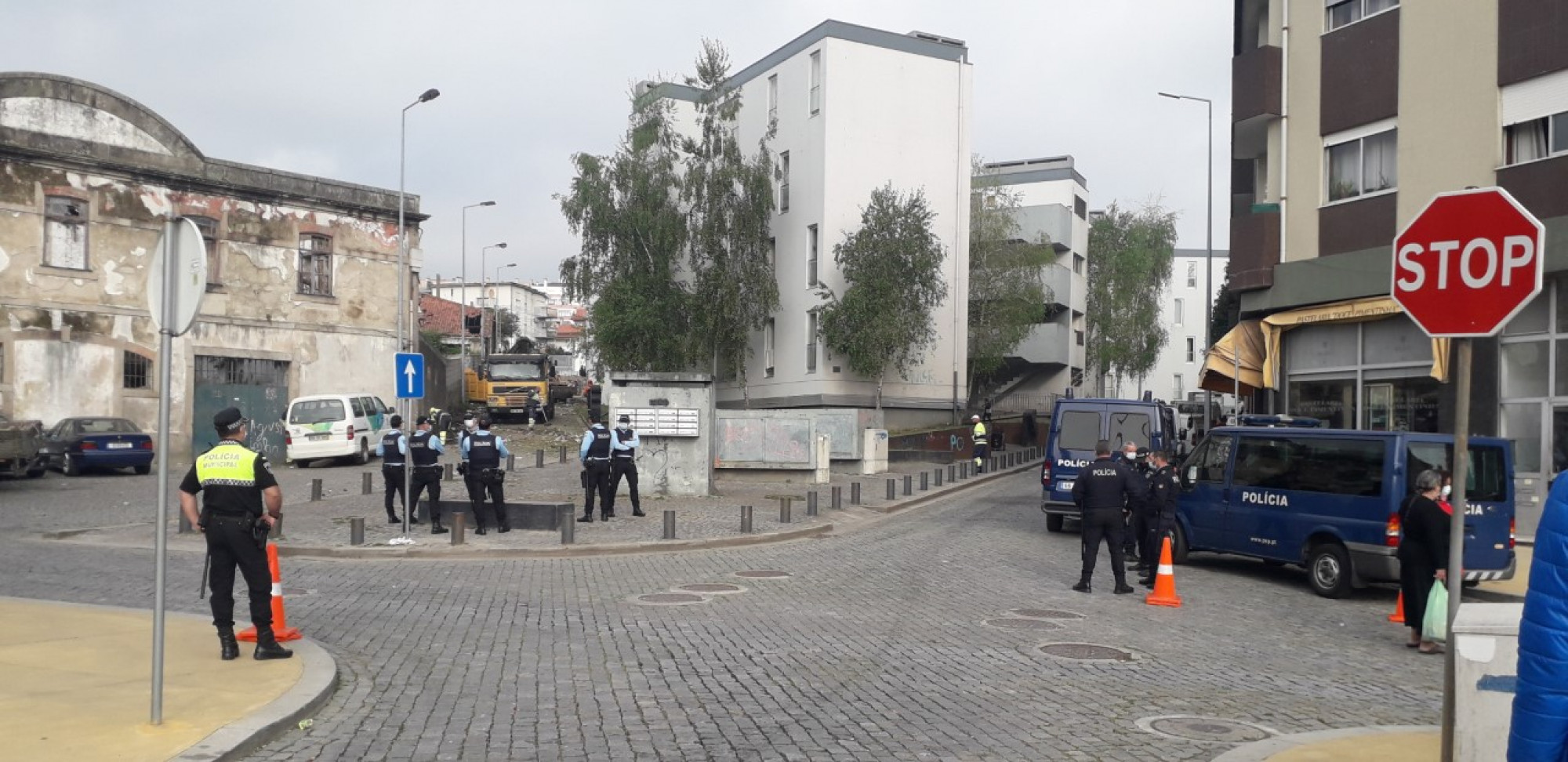 Um forte dispositivo policial está destacado para uma operação de limpeza que está a decorrer junto ao bairro das Bétulas, junto à Estação.