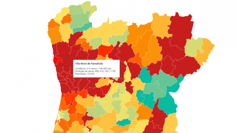 No espaço de apenas uma semana, Vila Nova de Famalicão regista mais 174 casos de Covid-19, escalando dos 1021 para os 1195, o que representa uma subida superior a 14 por cento.