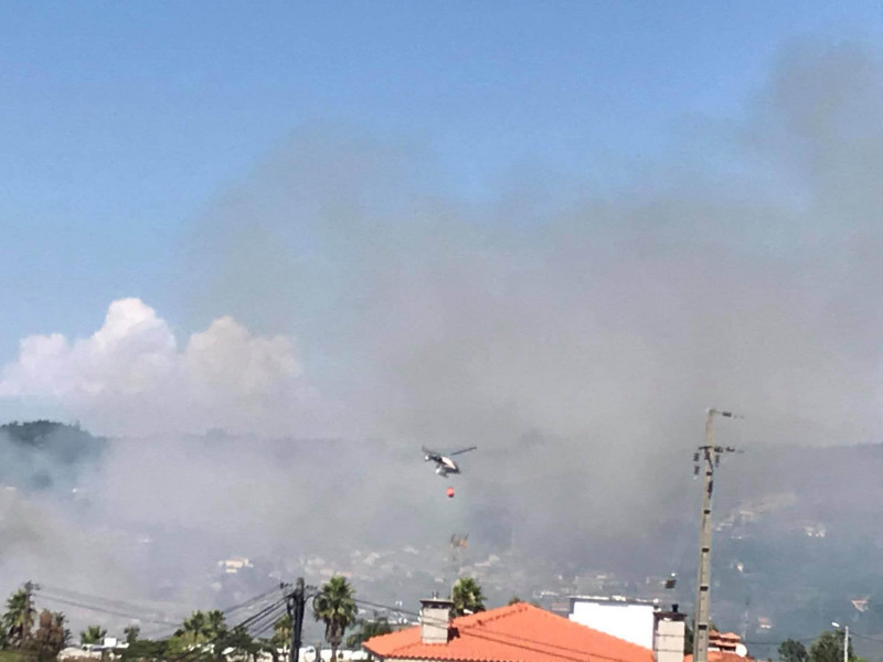 No local encontram-se os Bombeiros Voluntários Famalicenses e de Famalicão com apoio de um helícoptero.