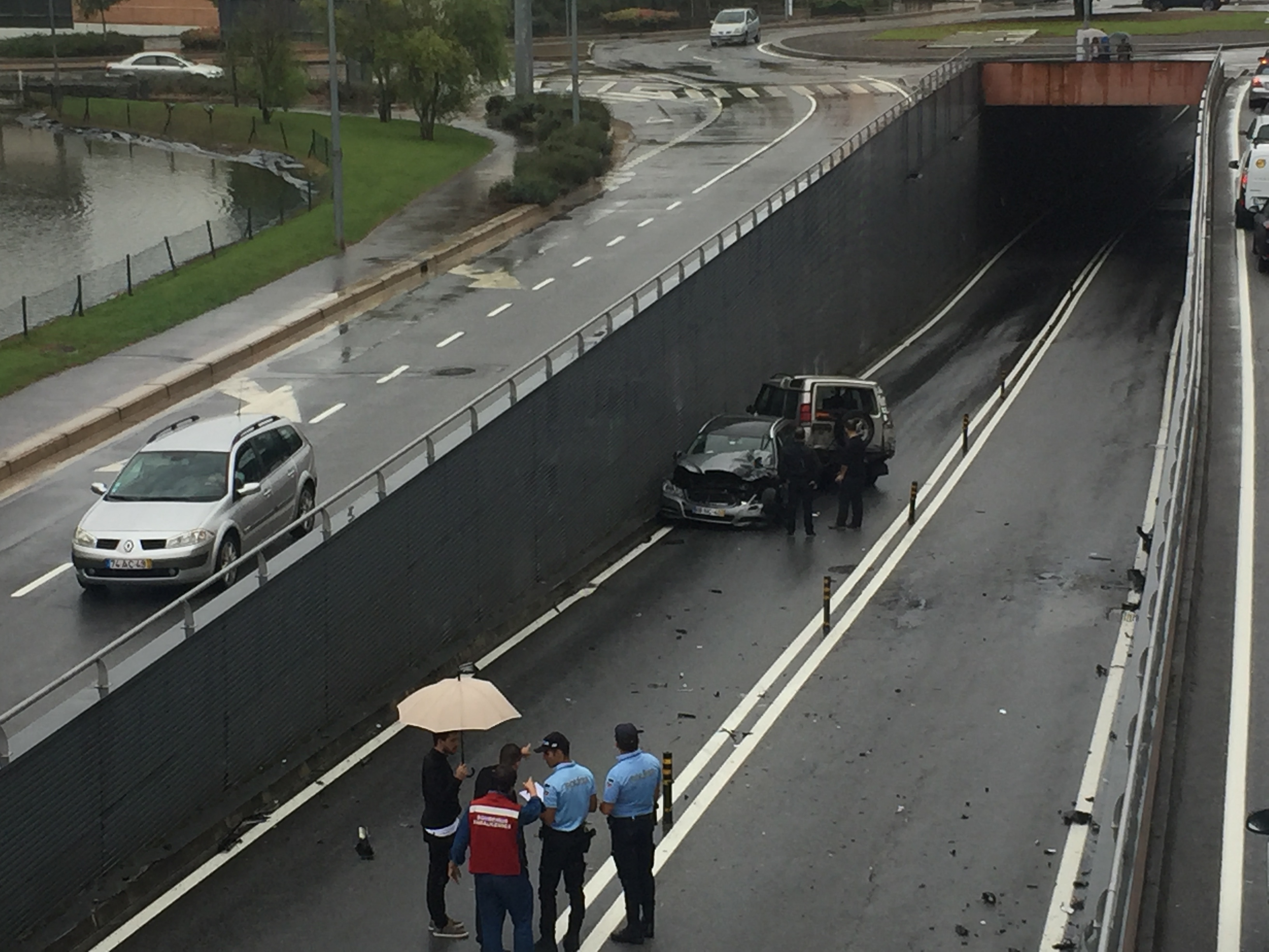 Ocorreu um despiste ao início da tarde de hoje no túnel da Avenida Dr. Carlos Bacelar em Vila Nova de Famalicão.