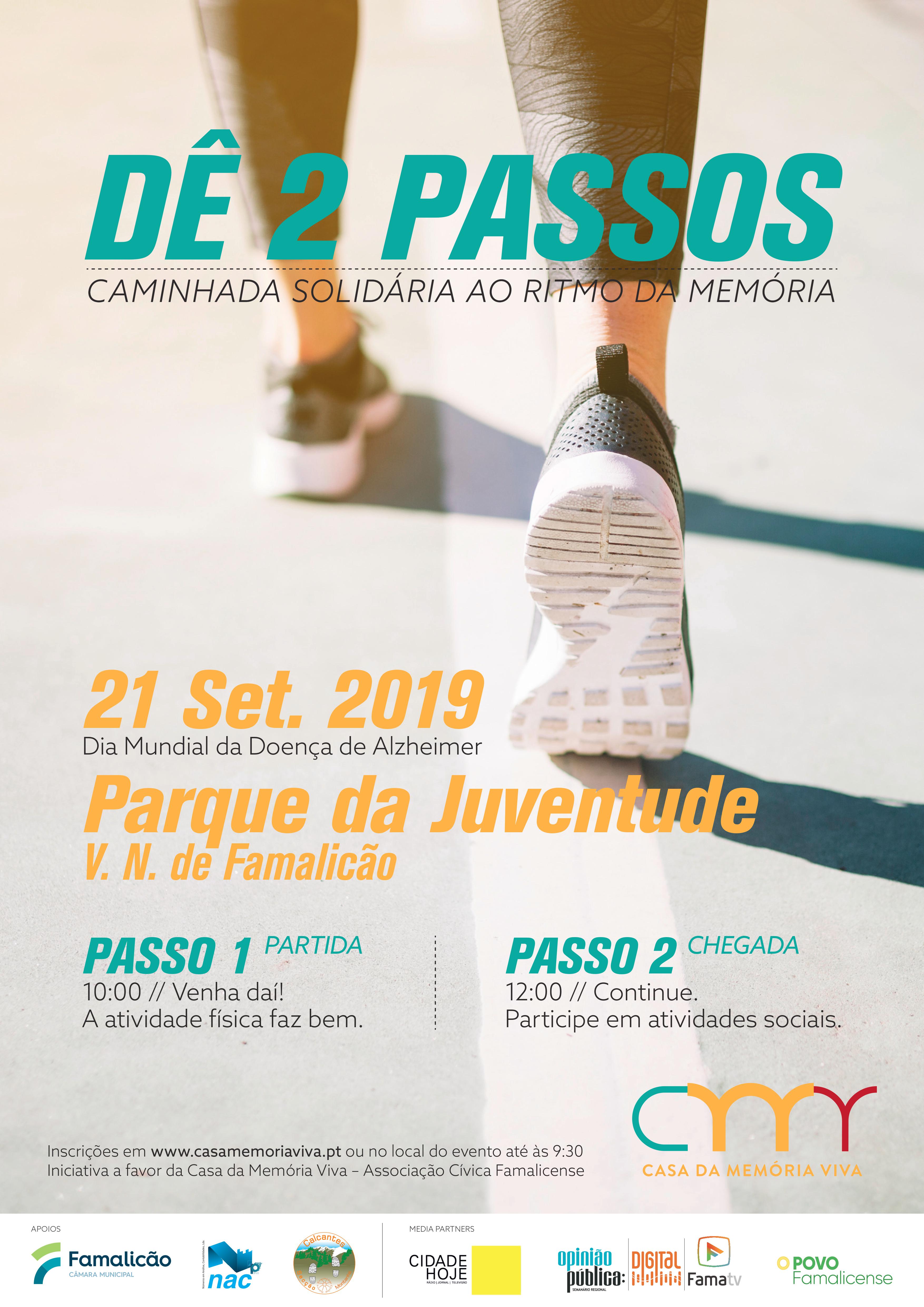 A recém-constituída Casa da Memória Viva – Associação Cívica Famalicense vai assinalar o Dia Mundial da Doença de Alzheimer, no próximo dia 21, com a realização da caminhada solidária “Dê 2 passos”. Com partida às 10 e chegada às 12 horas ao Parque da Juventude, a iniciativa levará os participantes a percorrer sete artérias da zona noroeste da cidade, num percurso inferior a quatro quilómetros e por pisos quase sempre regulares e planos.