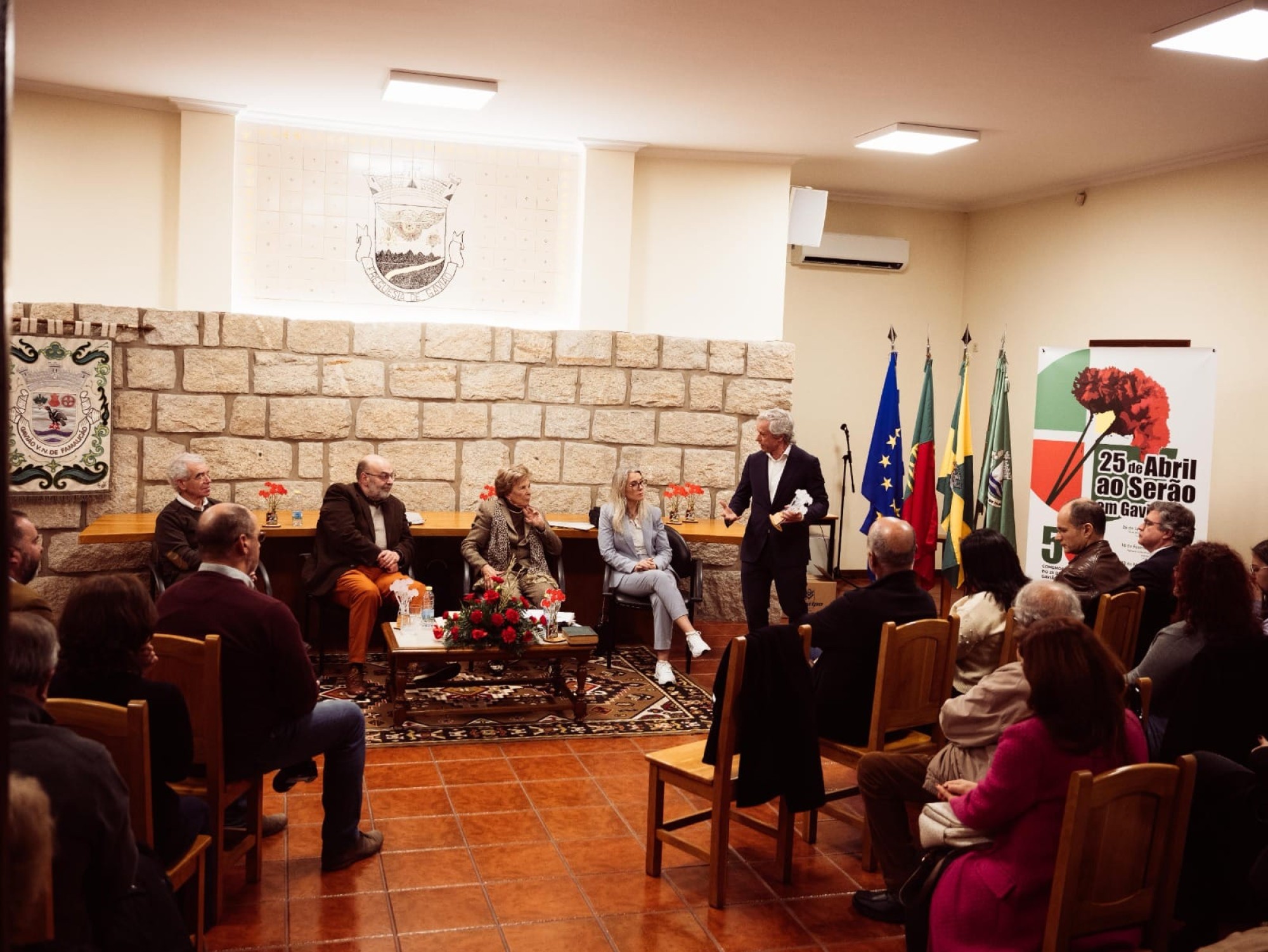 O Salão nobre da Junta de freguesia de Gavião ficou repleto para ouvir de viva-voz três protagonistas das áreas da educação, da indústria e da politica, que vivenciaram o período do pré 25 de abril e que souberam cativar toda a plateia com as suas narrativas.