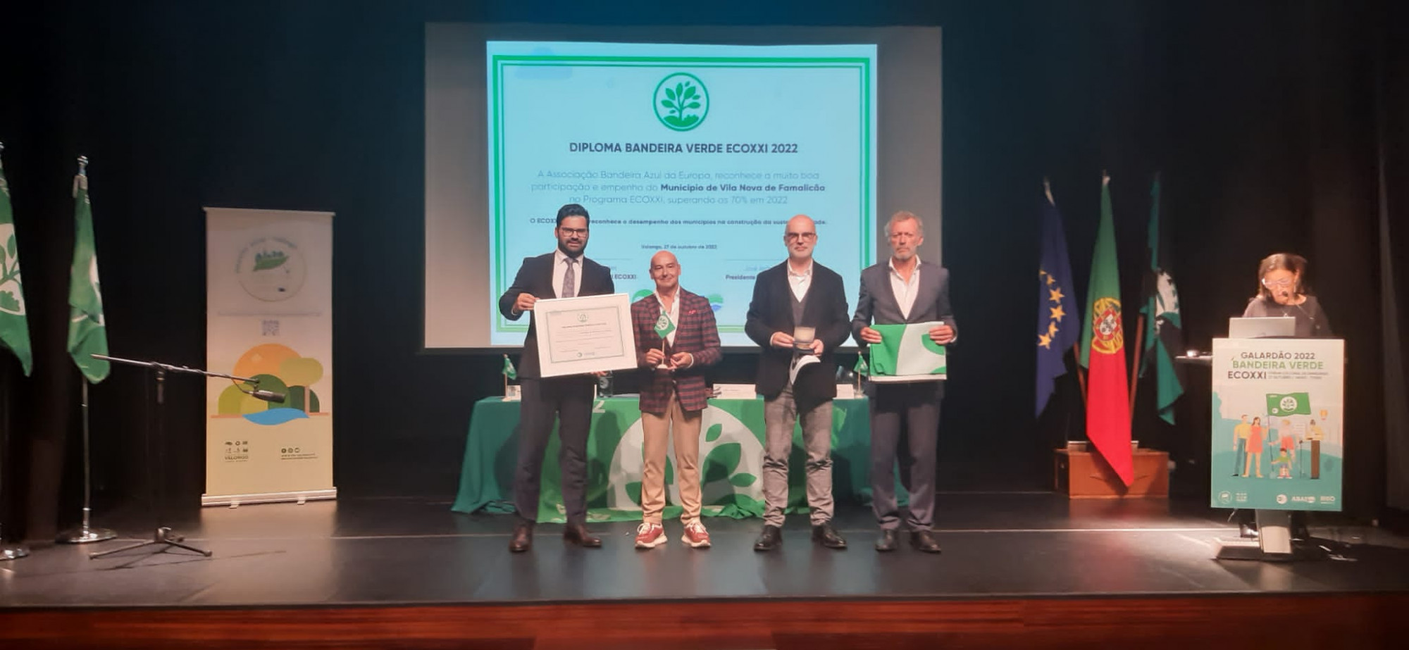 A Bandeira Verde ECOXXI é hasteada, pelo sexto ano consecutivo, pelo Município de Vila Nova de Famalicão. O símbolo, que reconhece as boas práticas de desenvolvimento sustentável adotadas pela autarquia, foi entregue ao vereador do Ambiente, Hélder Pereira, no passado dia 27 de outubro, no Centro Cultural de Ermesinde.