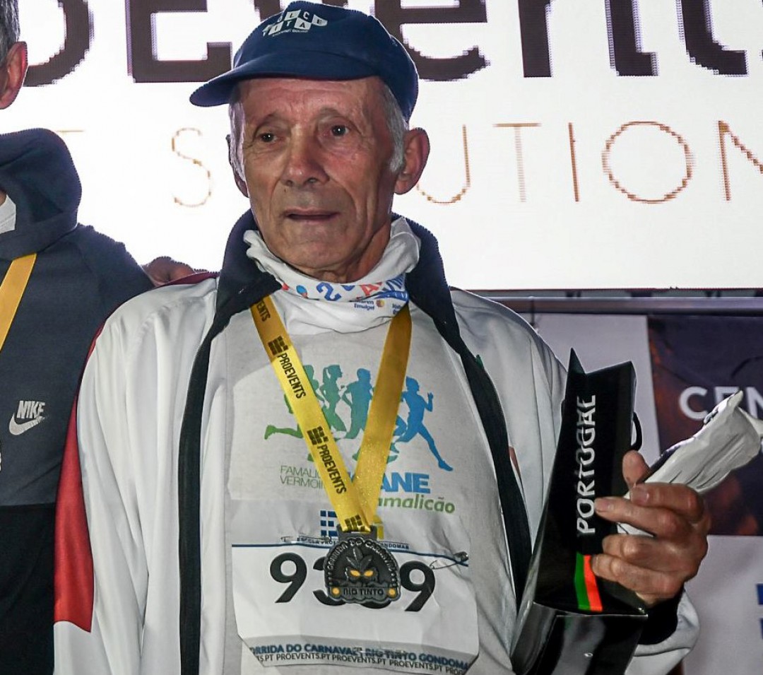 O atleta José Magalhães, de 72 anos, conquistou o 3.º lugar no escalão de veteranos +65 na irreverente e prestigiada Corrida de Carnaval de Rio Tinto.