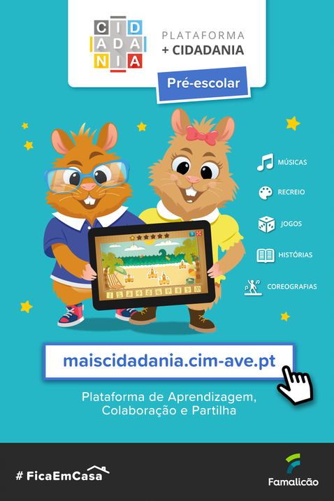 Tendo em consideração o panorama atual que vive a nossa sociedade face ao novo Coronavírus-COVID 19, o Município de Vila Nova de Famalicão, em parceria com a Comunidade Intermunicipal (CIM) do Ave, anuncia que a Plataforma +Cidadania, disponível em maiscidadania.cim-ave.pt passa a estar também disponível para a Educação Pré-Escolar.