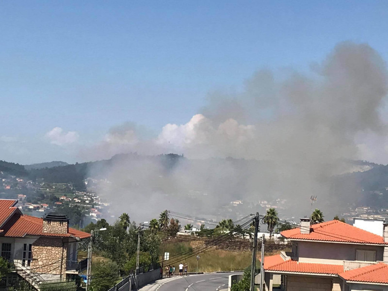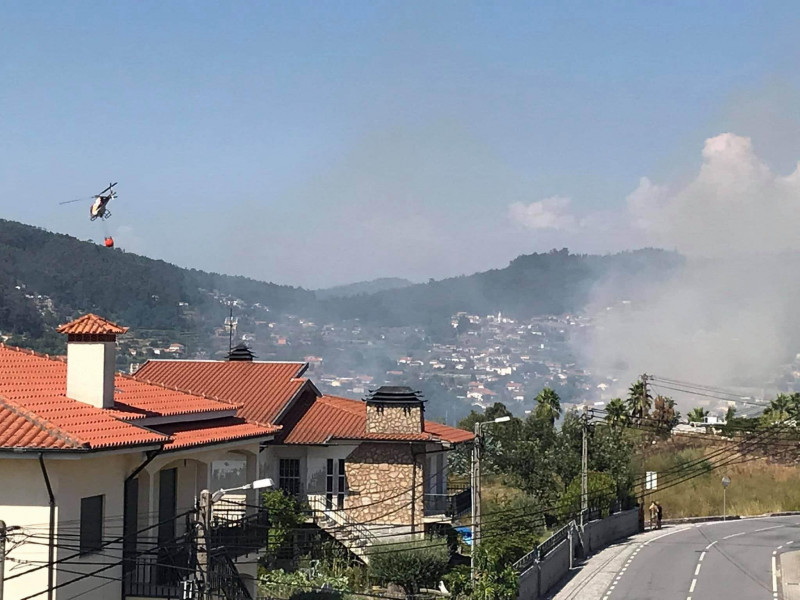 No local encontram-se os Bombeiros Voluntários Famalicenses e de Famalicão com apoio de um helícoptero.